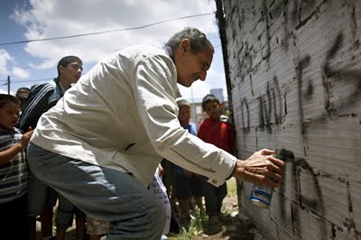 El negro manny haciendo alguna macumba africana (el de remera con franjas horizontales negras y grises