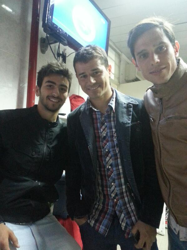 Pantaleone, Mora y Solari acompañando al plantel: