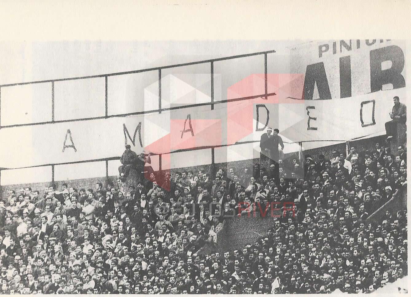 La hinchada de River y la bandera para Amadeo.