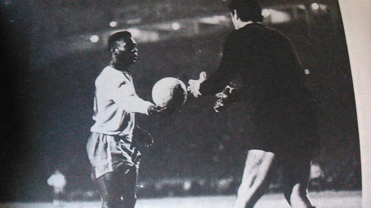 Amadeo recibiendo la pelota de manos de Pelé