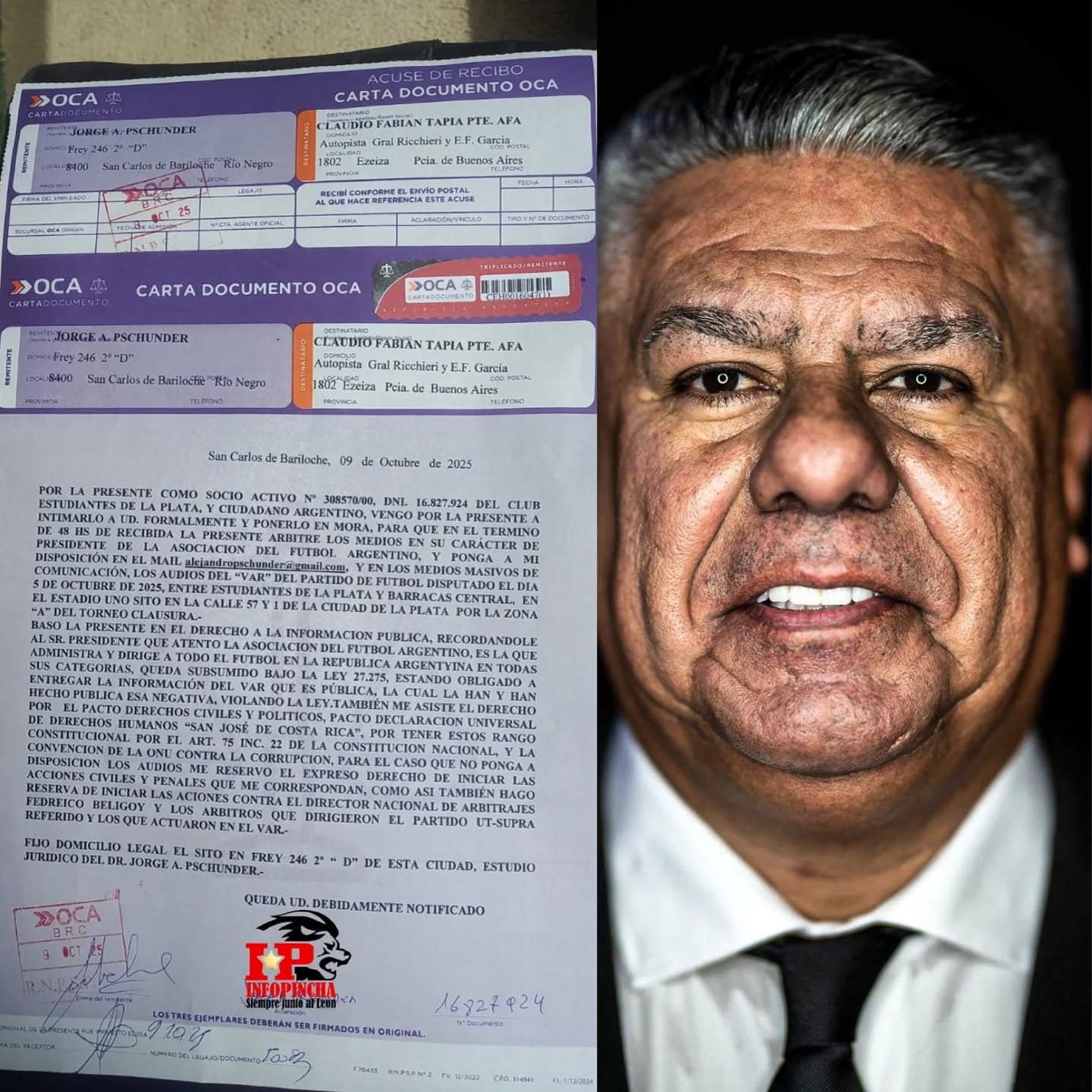 CARTA DOCUMENTO AL CHIQUI TAPIA