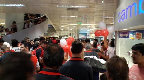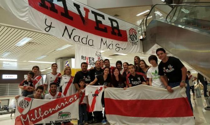 el centro de Asuncion esta lleno de hinchas de River, nos juntamos en una plaza y salimos caminando para el estadio?
