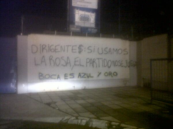 Aparecieron pintadas diciendo que si se juega con la rosa no hay partido… Ahora, el tema es que como el putito de Riquelme cumple un record de partidos jugados, no quiere q las fotos del record lo saquen con la rosita.