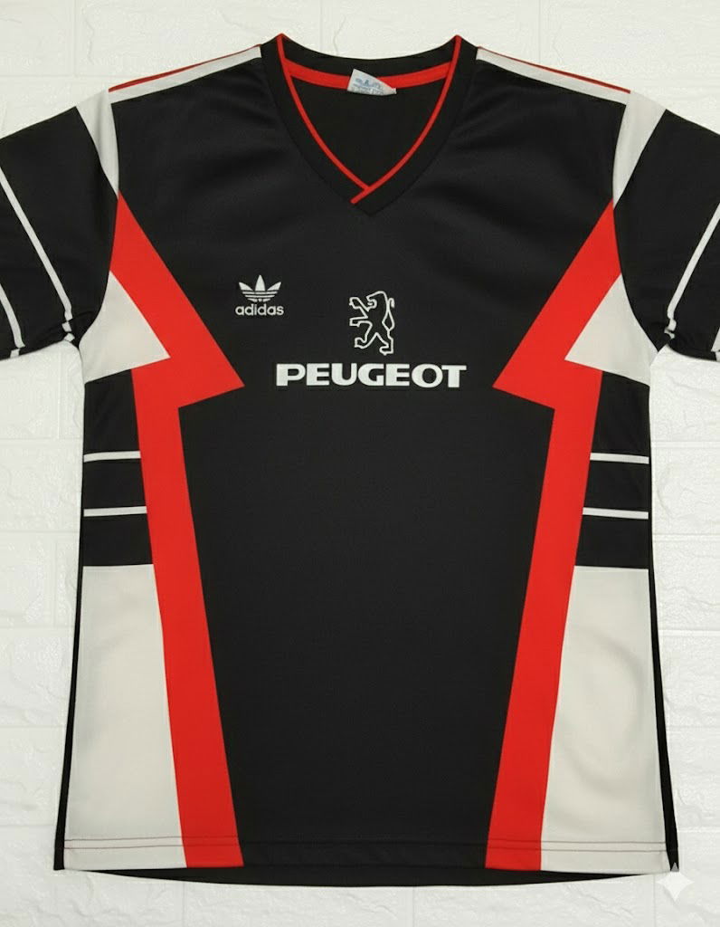 Volviendo al estilo Bayern/86 pero con el sponsor en rojo (no sé por qué salen los de atrás con las franjas más gruesas)