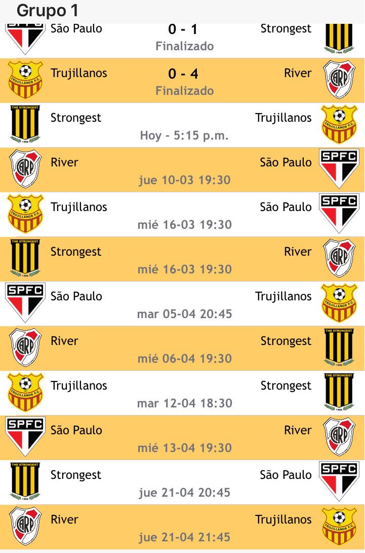 ya se juega por nuestro grupo the strongest-trujillanos (nos conviene que ganen los venelozanos o de ultima un empate)