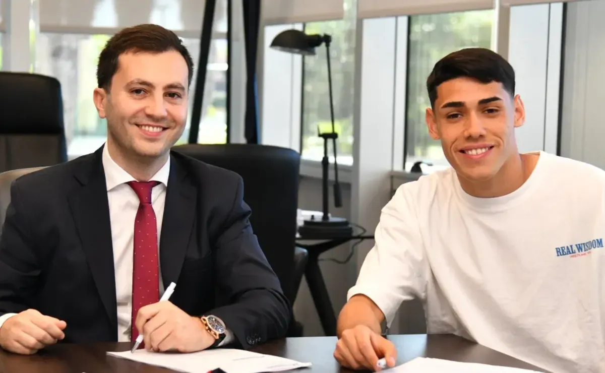 Santiago Lencina puso la firma y extendió su contrato junto a Stefano Di Carlo en las oficinas del Monumental.
