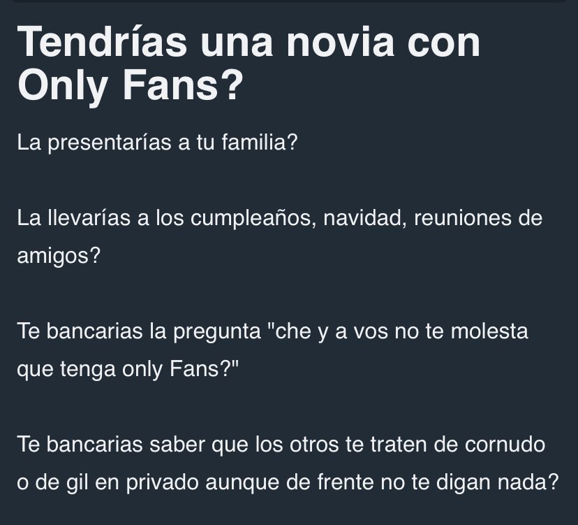 Suponiendo que una flaca de OF quisiera tener una relación conmigo que soy un muerto de hambre (?) mi respuesta es no.
