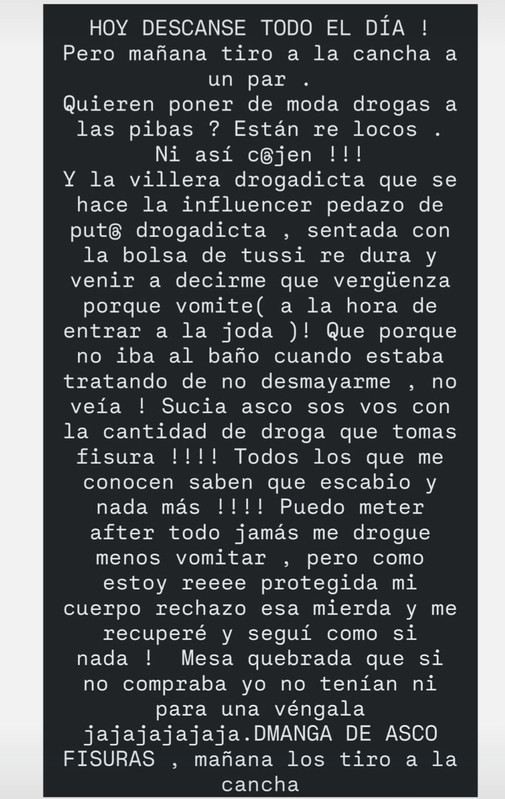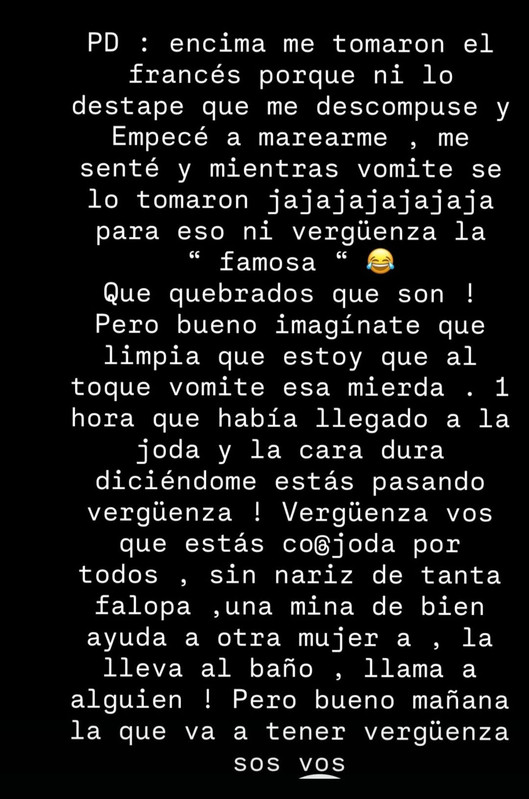 Encima acusa de falopera a otra y ella se eleva moralmente diciendo que solo toma, como si el alcohol fuera menos nocivo