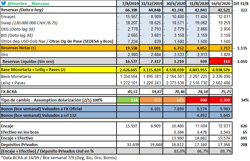 Hay un tipo en twitter que hace meses viene analizando un escenario de dolarizacion y a cuanto deberia estar el tipo de cambio para que se puedan reemplazar los pesos por dolares. Entiendo que al dia de este twit, de acuerdo a las reservas que tenes, para dolarizar, el peso lo tenes que tomar a un cambio de $1329 jajaj