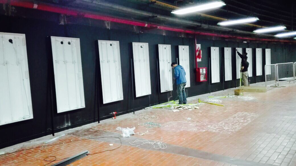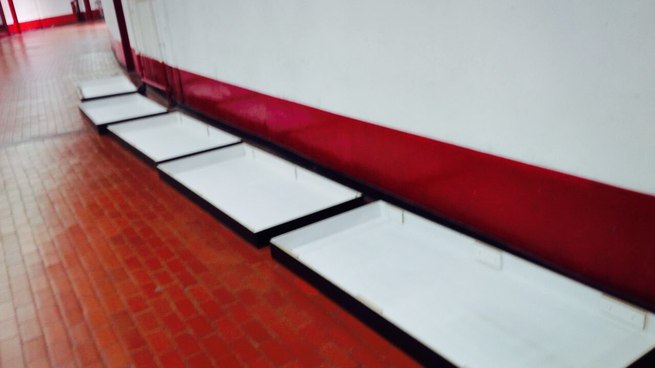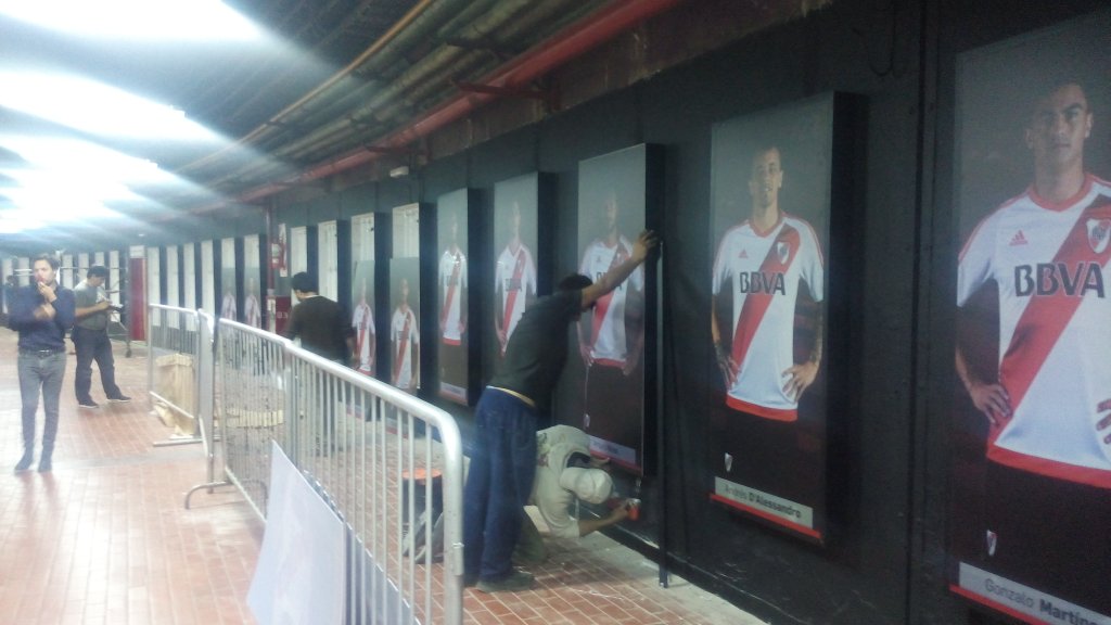 Gigantografías de los jugadores mucho no me va. Las van a tener que cambiar seguido porque acá los planteles te duran seis meses o un año. Por otro lado, mira lo que es ese piso, parece el de una casona abandonada de hace 100 años…