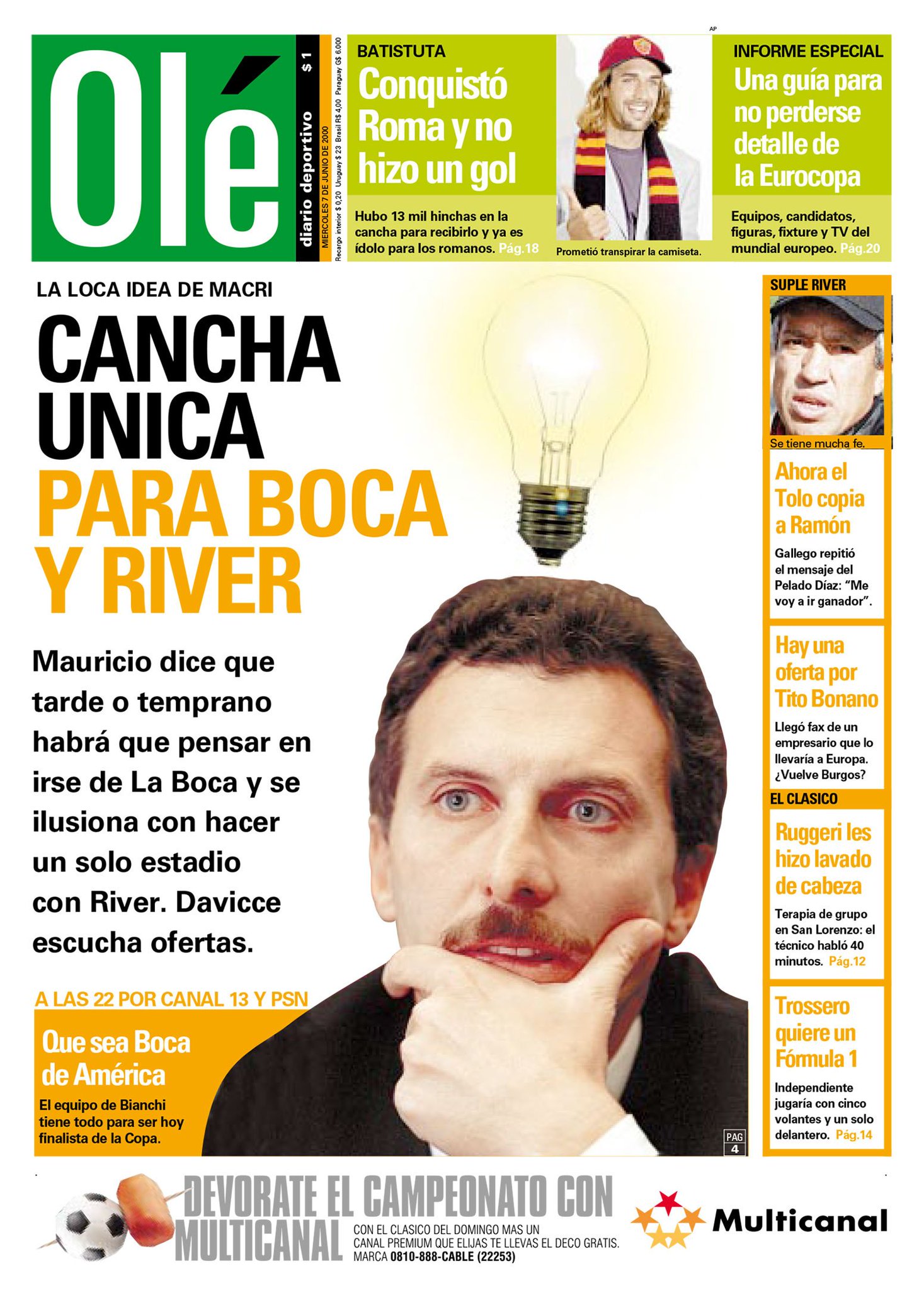 Pero hay muchos momentos en que lo unico que demuestra con estas propuestas fantasiosas y totalmente desligadas de la historia e identidad de ambos clubes (¿acaso alguien que toco alguna vez una pelota en su vida puede siquiera pensar en la posibilidad de compartir un estadio river y boca?) es que al viejo le falta una calle tremenda en cuestiones futbolisticas.