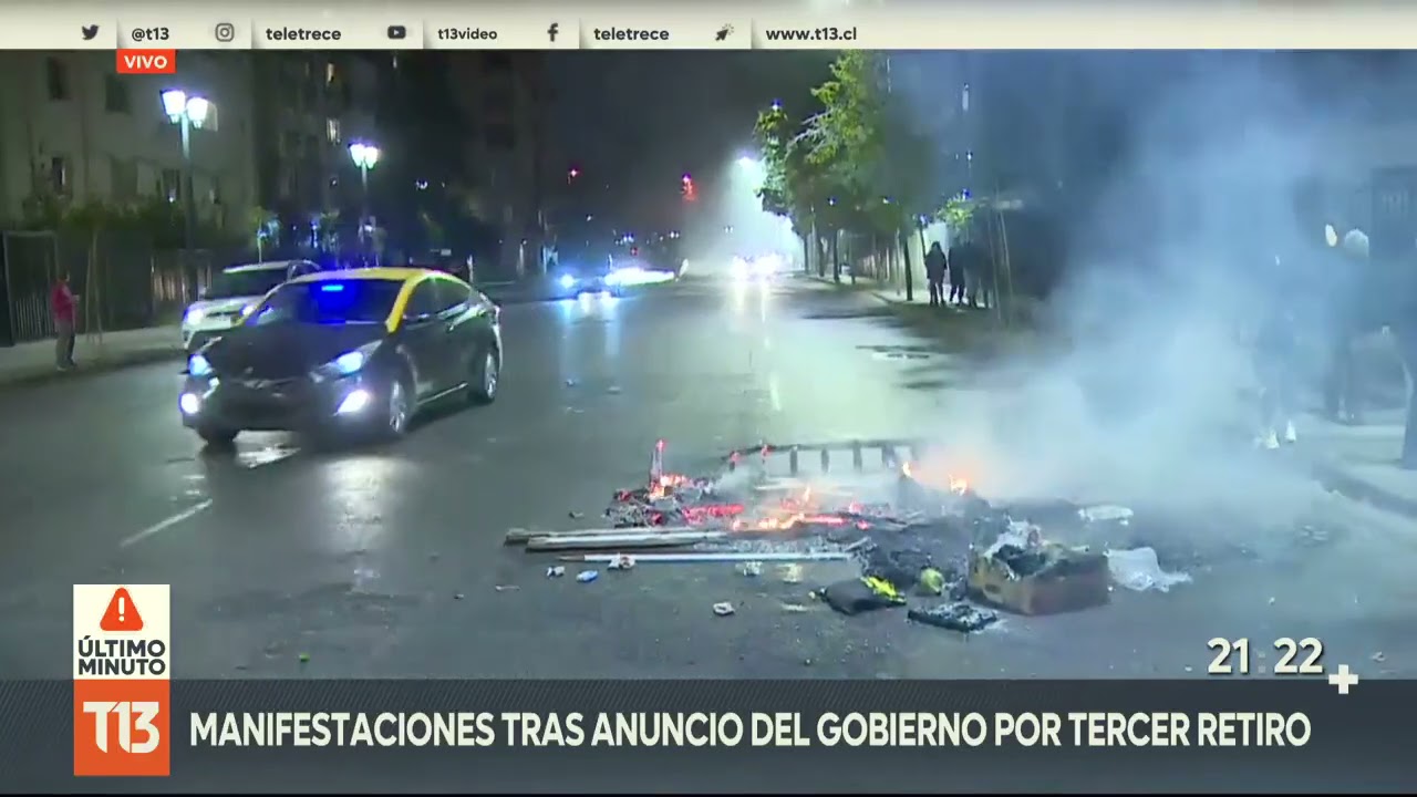 Diversas manifestaciones en comunas de Santiago de Chile, tras anuncio del gobierno de recurrir al TC para frenar tercer retiro del 10%.