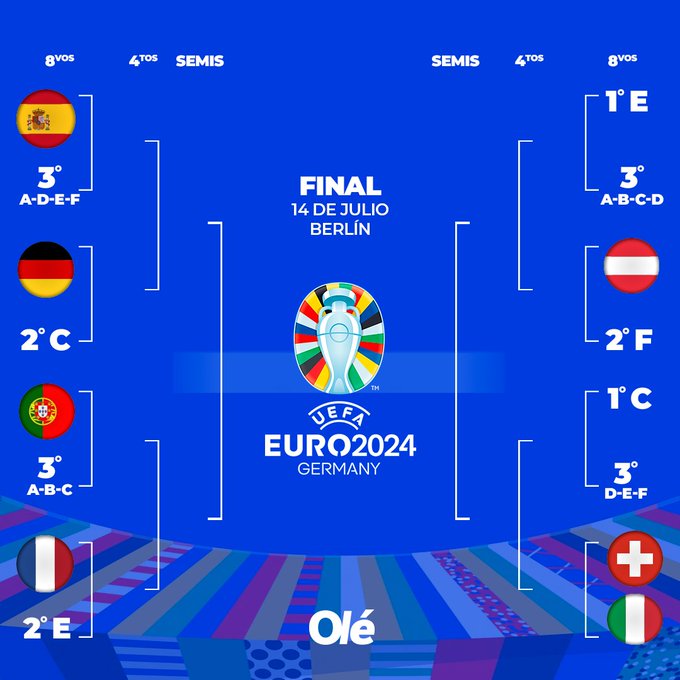 En la misma llave van España-Alemania y Portugal-Francia para 4tos de final y los ganadores se enfrentarían en semis
