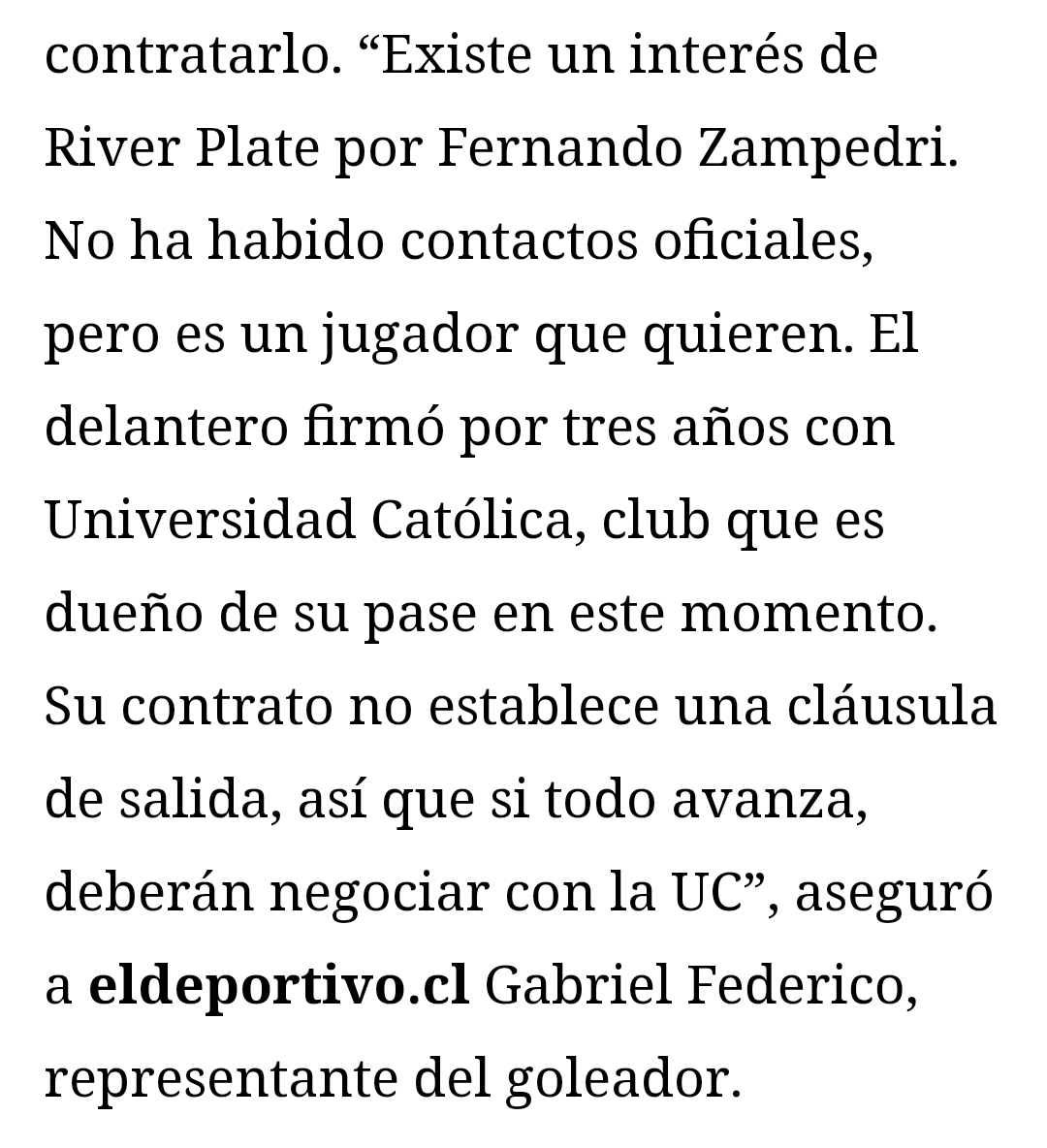 No le veo ni pies ni cabeza a lo de Zampedri. Hace muy poco los chilenos lo compraron y el delantero no me parece gran cosa tampoco.