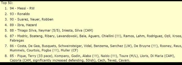 Ya salieron los 50 mejores jugadores de FIFA 16. Si quieren mas detalles de ritmo, fuerza, regate, etc. fijense los “youtuber” que tienen todo
