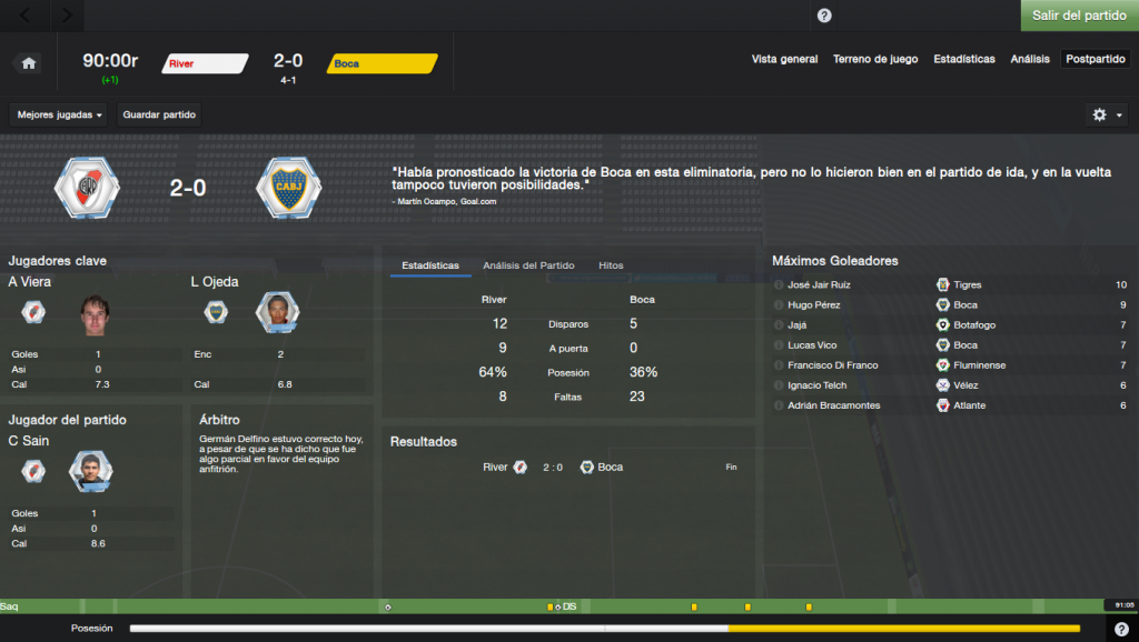en la semi jugamos contra Tigres de méxico que no tiene nada excepto un delantero estrella y del otro lado está Vasco y Flamengo