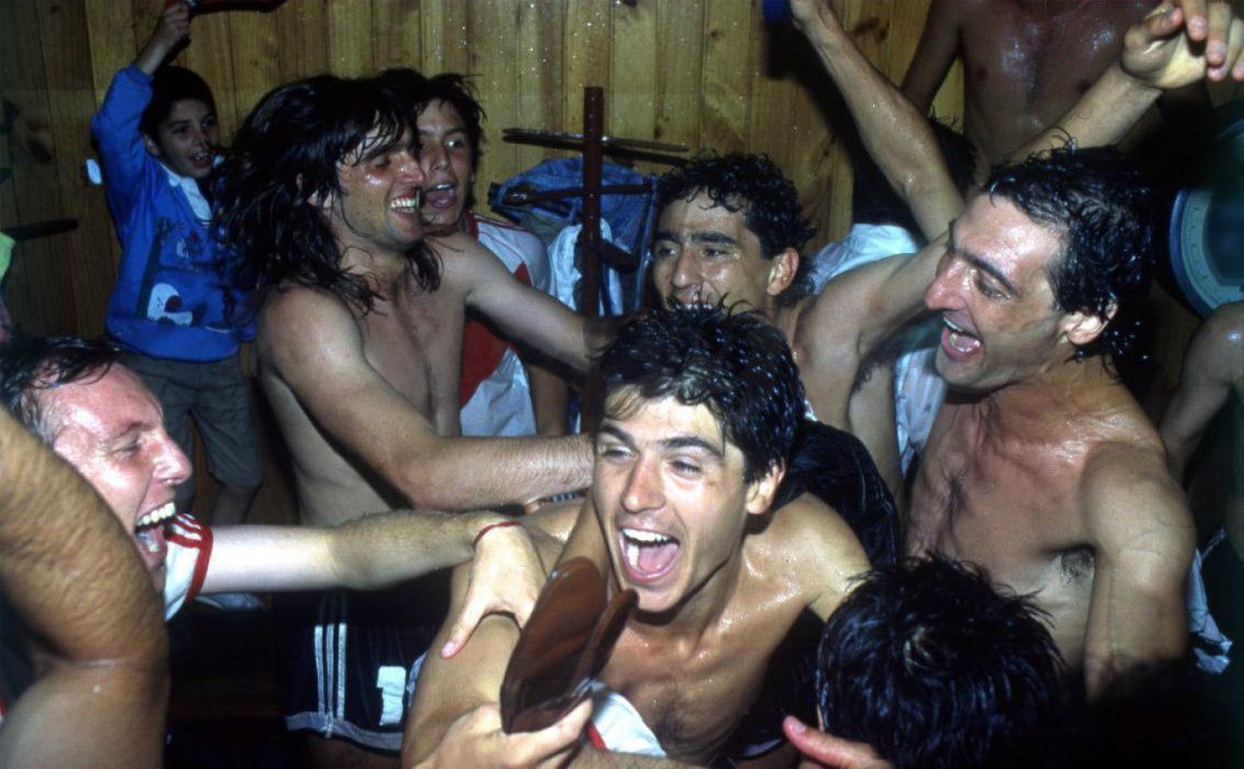el pibe quew esta atras de berti es el hijo mayor de passarella (que murio en un accidente de transito por el año 95/96) y el chiquito quye esta por ahi atras de buzo azul pareciera ser emiliano, el hijo de ramon diaz. Apertura 1991.