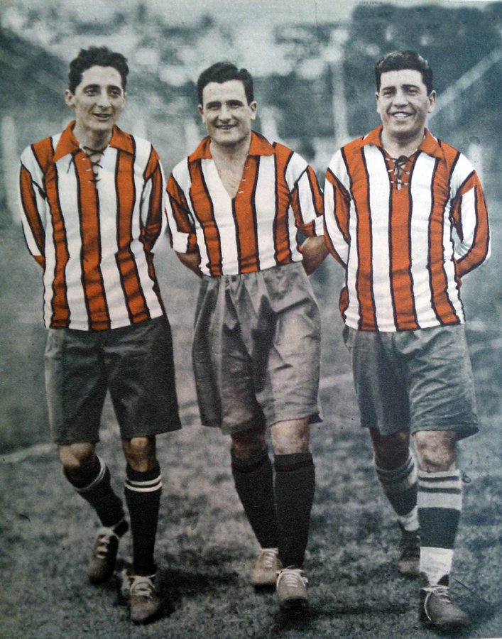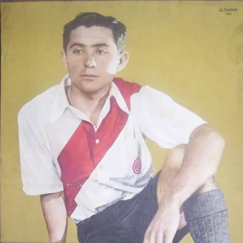 Dos jugadores de San Lorenzo (Alberto Chividini y Luis Monti) y uno de la bosta (Ramón Mutis) usando el conjunto de River en un partido entre combinados argentinos para determinar el plantel para el mundial del 30, impensado hoy en día :surprised: