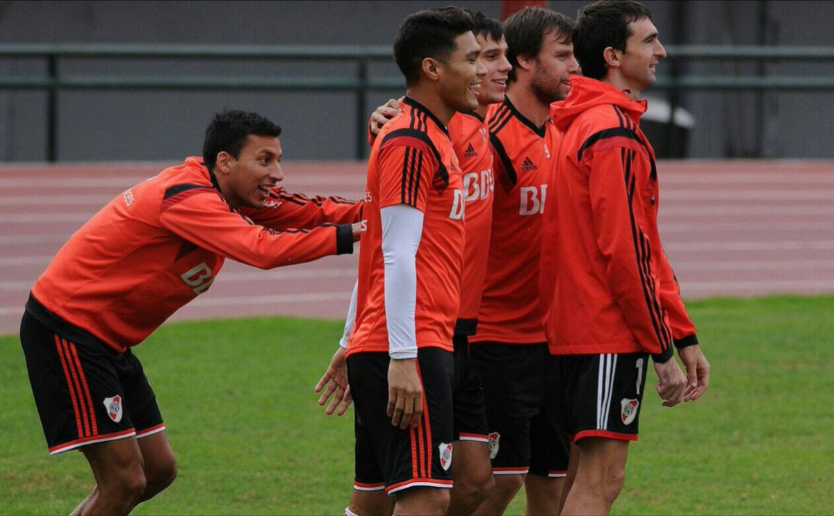 Increíble que exista una foto con Pedernera hablándole a D’Alessandro. Del equipo de campeón de 1936 a la recopa de 2016 abarcados en una misma imagen