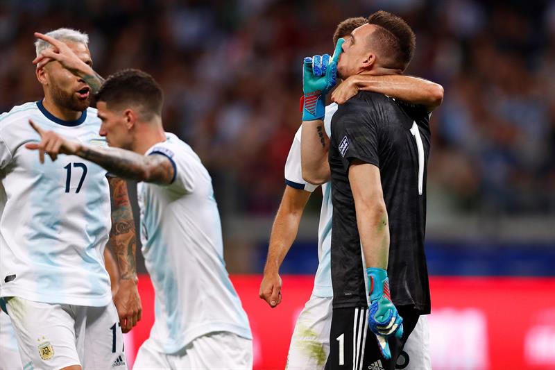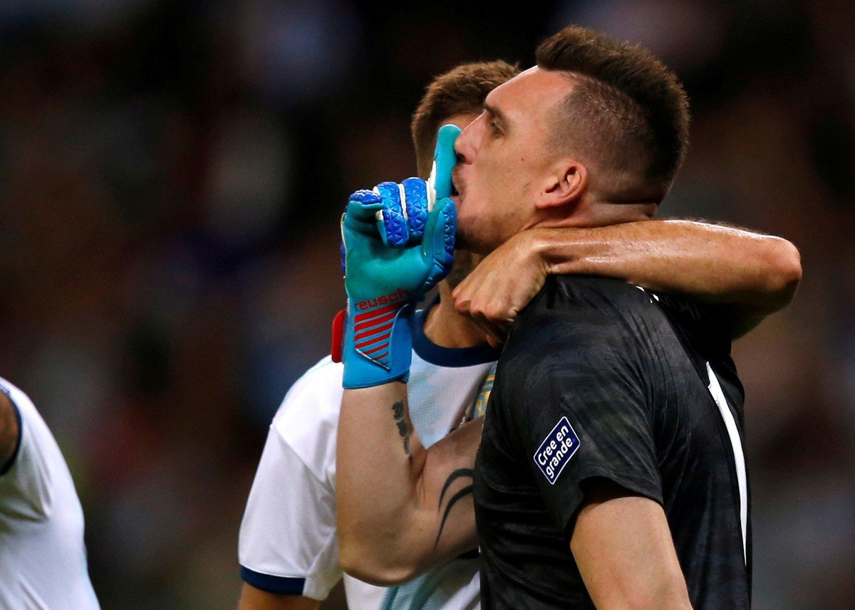 A mí se me vino a la cabeza el temple que tuvo para mantener la mano con la que tapó el penal en alto, como si ya desde antes de que lo patease Gigliotti ya supiera cómo lo iba a “festejar”.