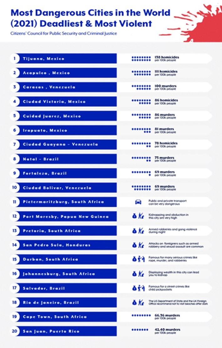 De las 12 ciudades más peligrosas del mundo, 9 están en Mexico.