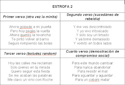 Para entender el G.A.R.CH. no hace falta siquiera haber terminado cuarto grado: hay que elegir una línea de cada columna y combinarlas para hacer una canción. Con las primeras cuatro columnas armás la estrofa 1, con las segundas cuatro armás la estrofa 2 y con las terceras cuatro armás el estribillo. Después, para que el tema se haga más largo, repetís todo de nuevo. ¡Más fácil que chorear un videoclub estando del orto! Y lo mejor de todo: una vez que compusiste una canción de esta forma… ¡volvé a empezar, combiná todo distinto y componé otra! ¡Y otra! ¡Y otra más! Tenés opciones como para unos tres o cuatro discos.