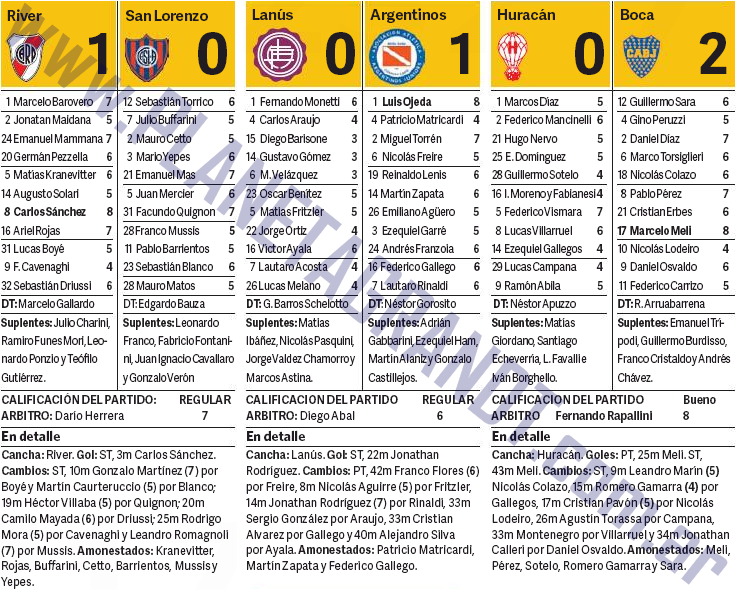 7 puntos le ponen, una de las figuras de la cancha después de Sanchez