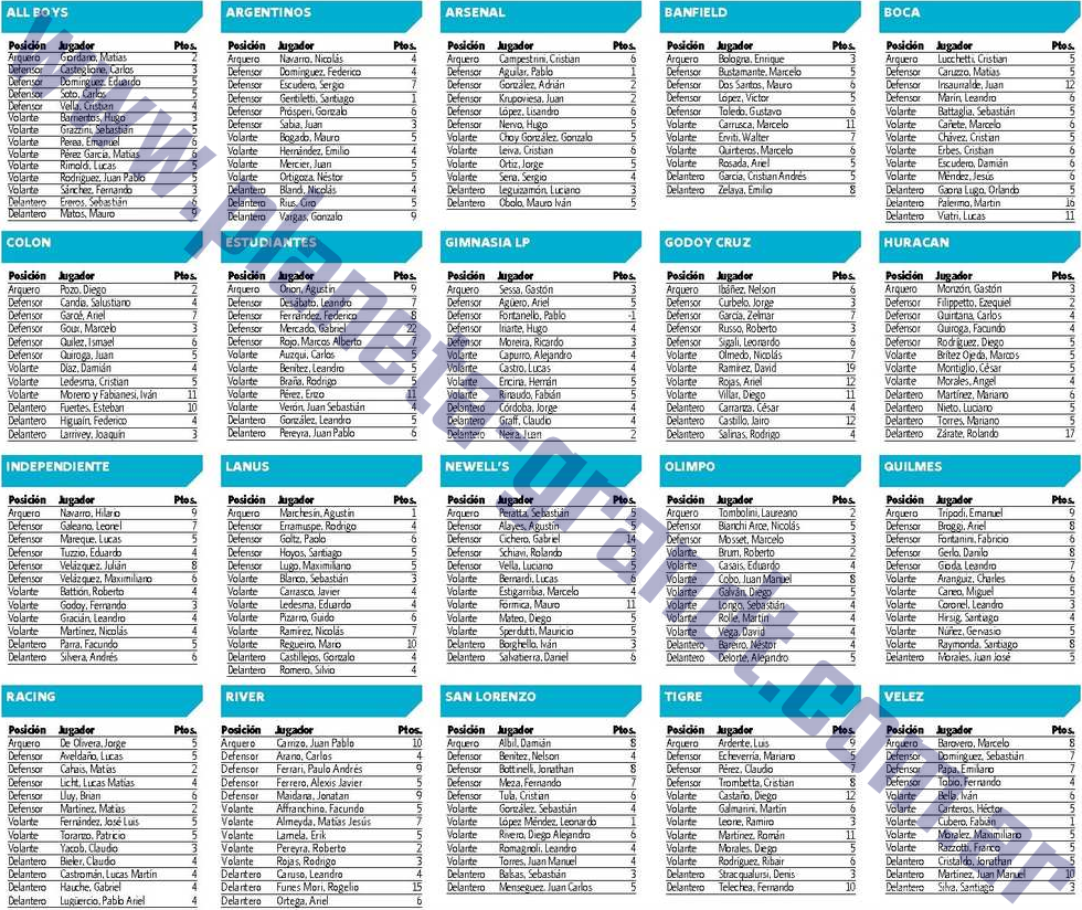 Alguno seguro tiene arriba al Roly, Palermo y Funes… En la defensa estos 3 Dos Santos, Victor Lopez, Tula los cambias por Maidana, Insaurralde y algún otro que se me escapa y te cambia todo… Mañana veremos, pero por los puntos que están dando vuelta, para mi, no baja de 140.