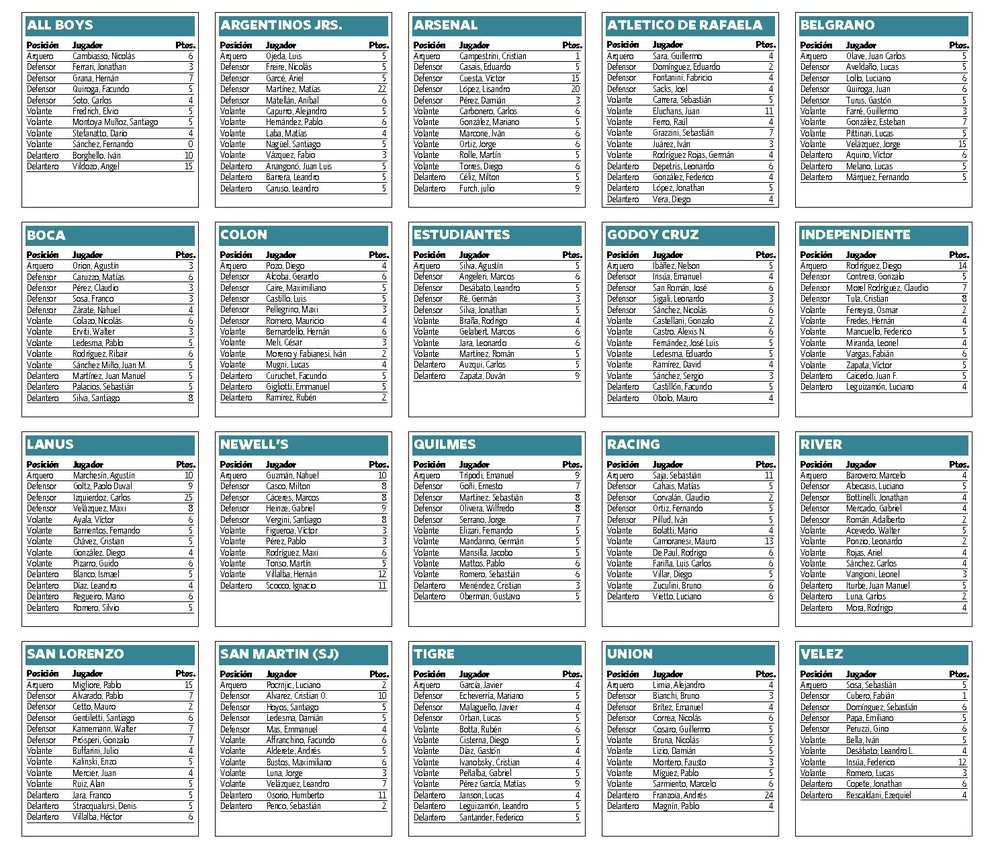 56 puntos y me falta Jonathan López, de At. Rafaela. 72 es el piso para una fecha aceptable, a mi entender.