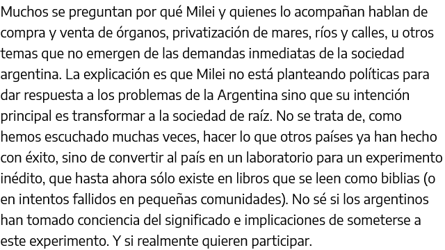 Milei ya anticipo lo que hace, y lo que hace ya no hay dudas que genera un desastre mucho peor. Salvo que se modere y ahí hablamos de otra cosa.