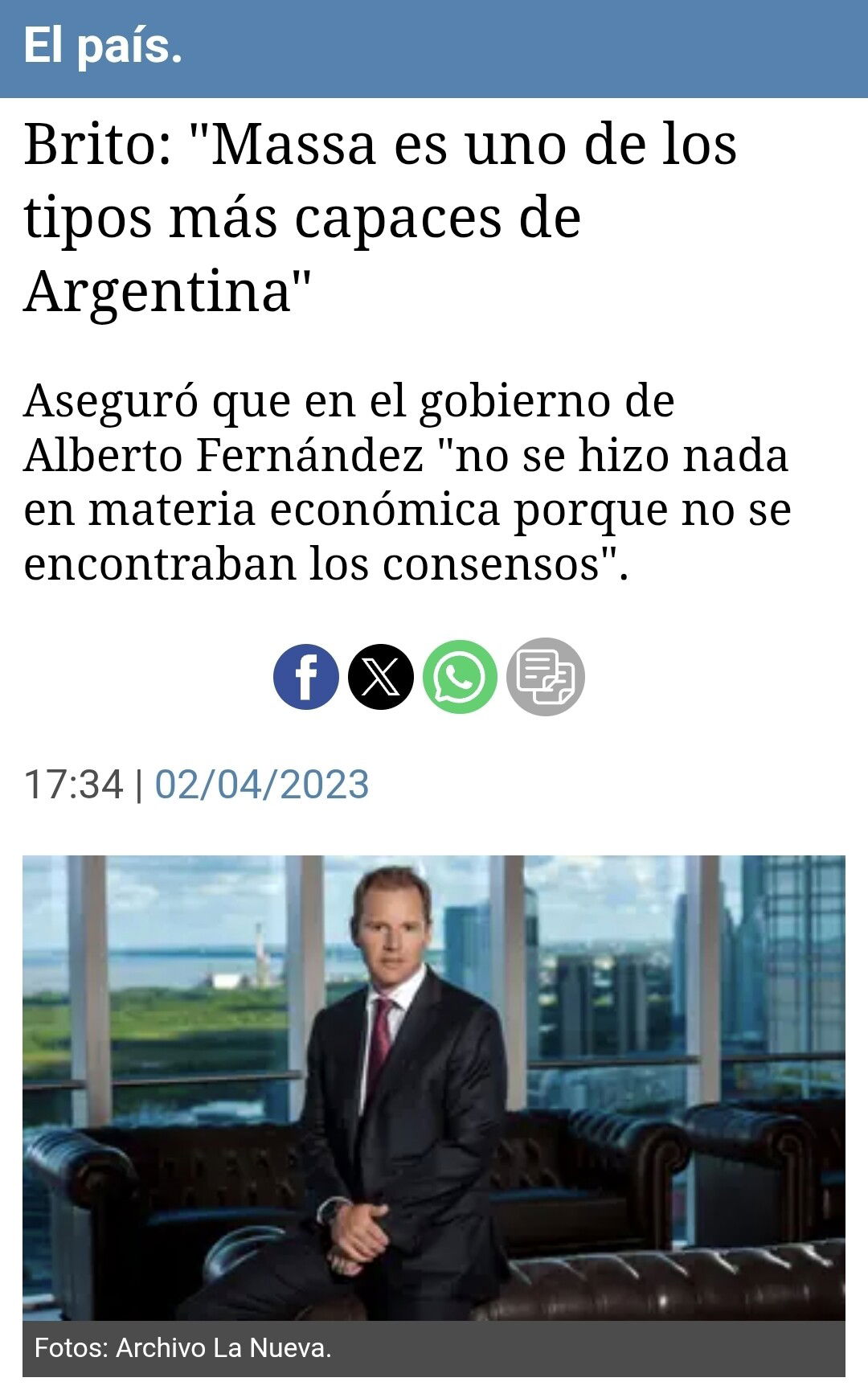 No está con el PRO, lo que pasó es que Brito en 2023 se la jugó fuerte por Massa y Massa terminó perdiendo, y después de eso medio que se mantuvo al margen de todo y no se la jugó más por nadie.