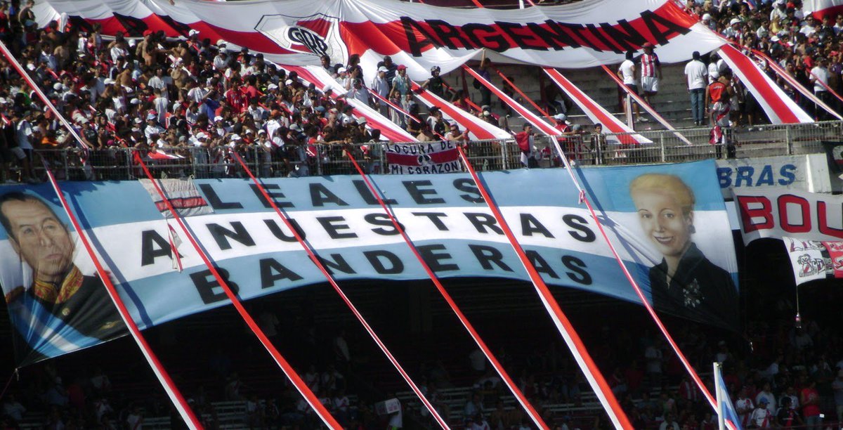 Casi todas las barras bravas del fútbol argentino tienen banderas del peronismo.