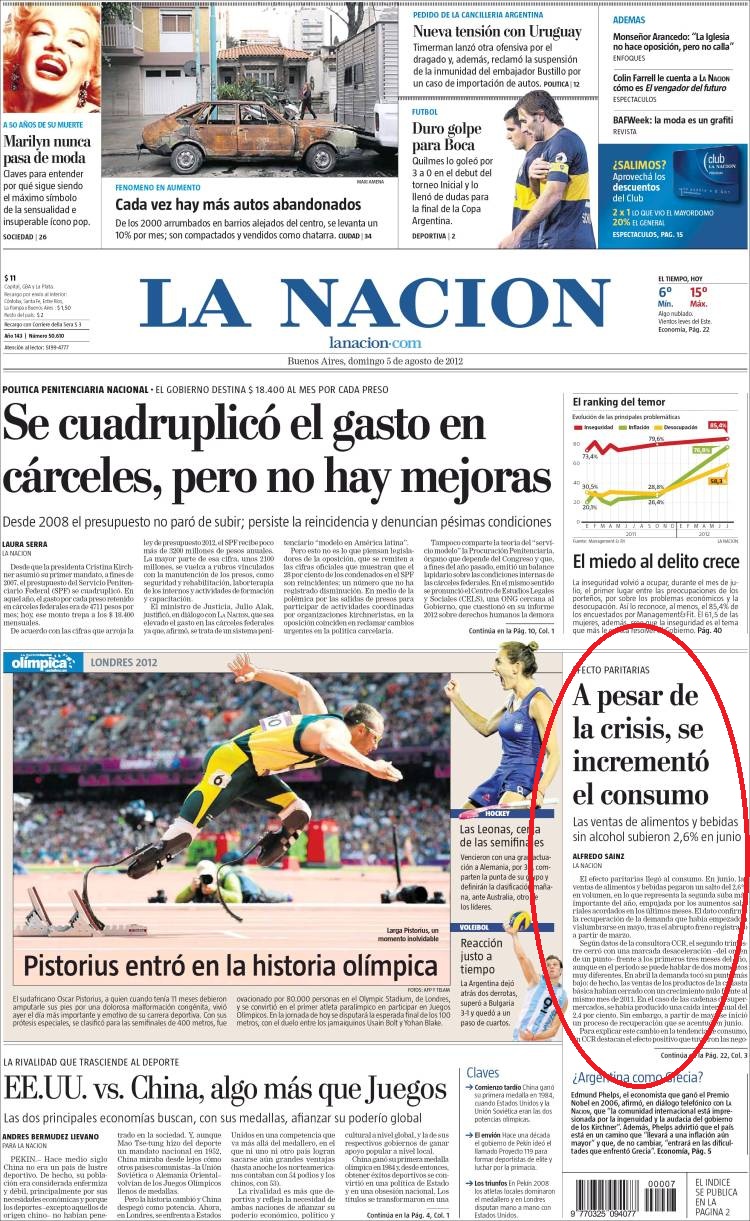 Podríamos discutir cada uno de estos puntos, especialmente el que se refiere al 82% movil de las jubilaciones y el que se refiere a las obras sociales, pero lo relevante es que la nota es un reflejo del efecto “Boden 2012” que hasta muy poco antes del desmbolso era puesto en duda por economistas y la prensa opositora en general.