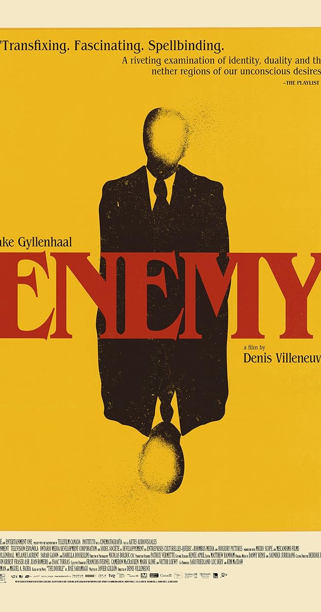 Es de esas peliculas que tenes que ver varias veces para entenderla si no sos de ver ese tipo de cine. Thriller Psicologico se llama ese “genero”, la pelicula esta basada en un libro de Saramago, el hombre duplicado.