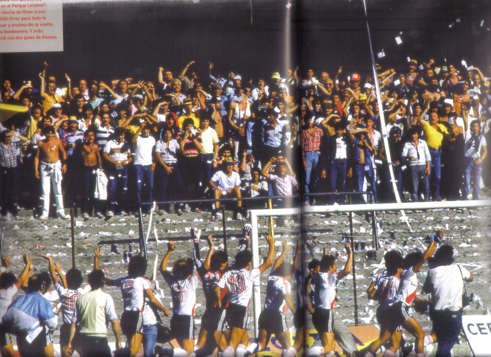 - En lo futbolístico este sería un año con dos subcampeonatos para River, que traería otra caída 3 a 0 ante Boca en La Bombonera por el Clausura, y la eliminación en cuartos de final de la Libertadores ante el Cruz Azul de México. Ese año se produjeron las transferencias de Aimar al Valencia y de Saviola al Barcelona. También a mediados del 2001 se produjo la salida del Tolo Gallego y volvió uno de los máximos ídolos de la historia de River: Ramón Diaz.