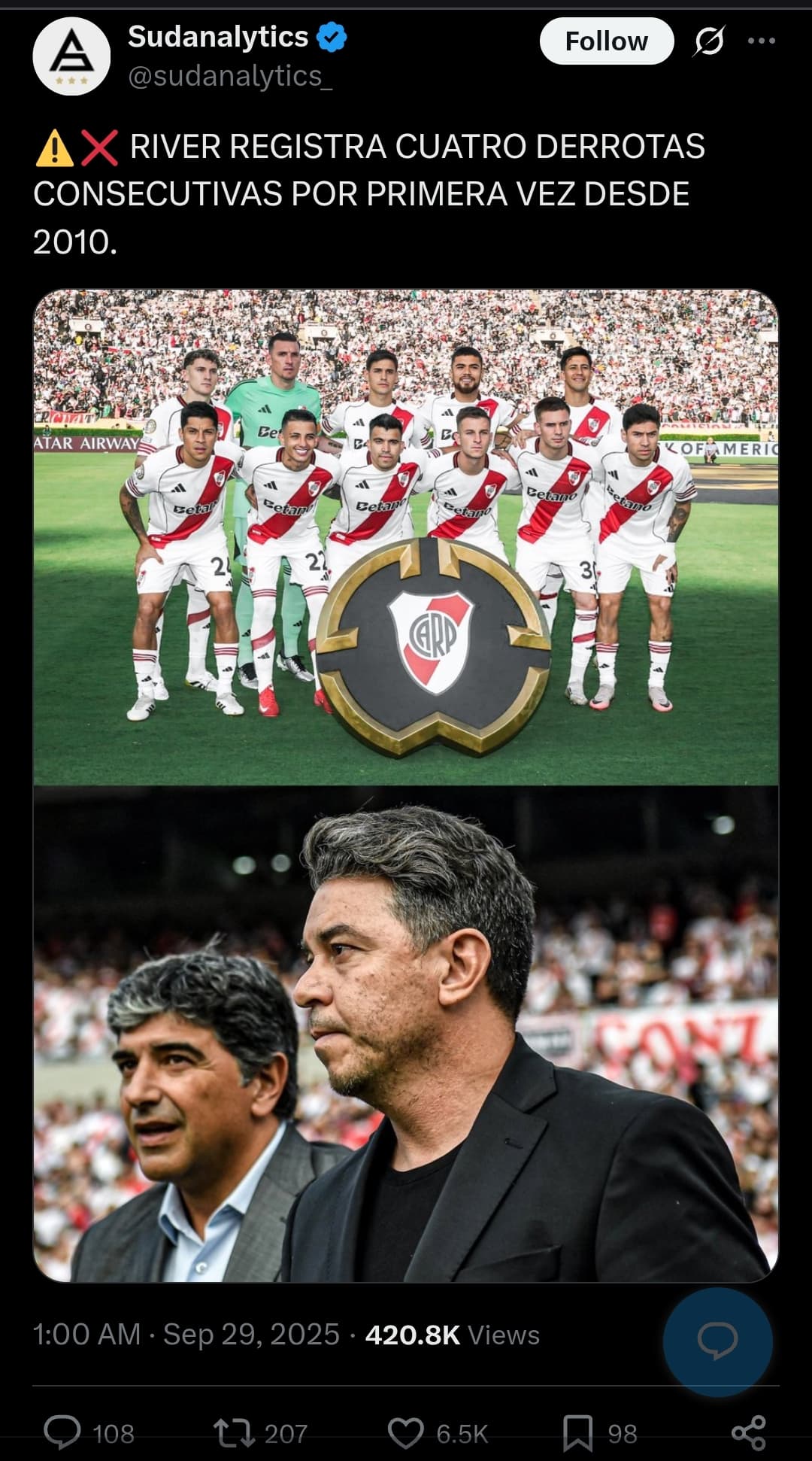 100 palos gallardouuu para armar este plantel que no juegan absolutamente a nada y todos los partidos importantes fueron formaciones que nunca pusiste antes.
