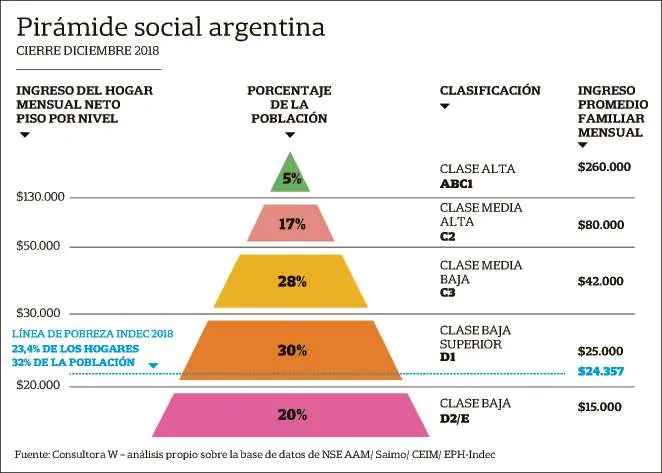 Esta es la pirámide social argentina de hoy, dolorosa pero real. En un país donde el 80% se considera clase media.