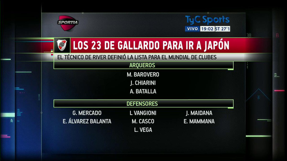 Segun la lista, son los 23 más preparados. Aunque esté el Pity, Bertolo, Casco y Balanta yo voy a recuperar las Malvinas con estos hombres. Prefiero quemar un veterano o un titular que andar llevando pibes que recientemente debutaron a un certamen de esta magnitud. Reitero, para mi, River lleva toda la carne que puede meterle al asador.