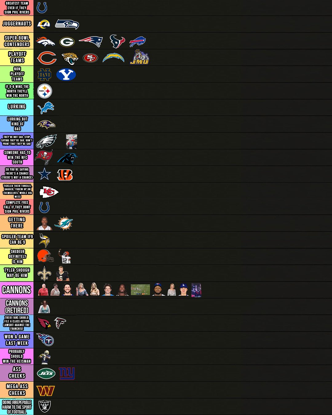 Bills. Deportivo Josh Allen y James Cook. No tienen pass rush, no tienen secundaria, no paran la carrera, se le cayeron todos los receptores. Que carajo hace el front office en la offseason? Otra oportunidad como esta no van a tener