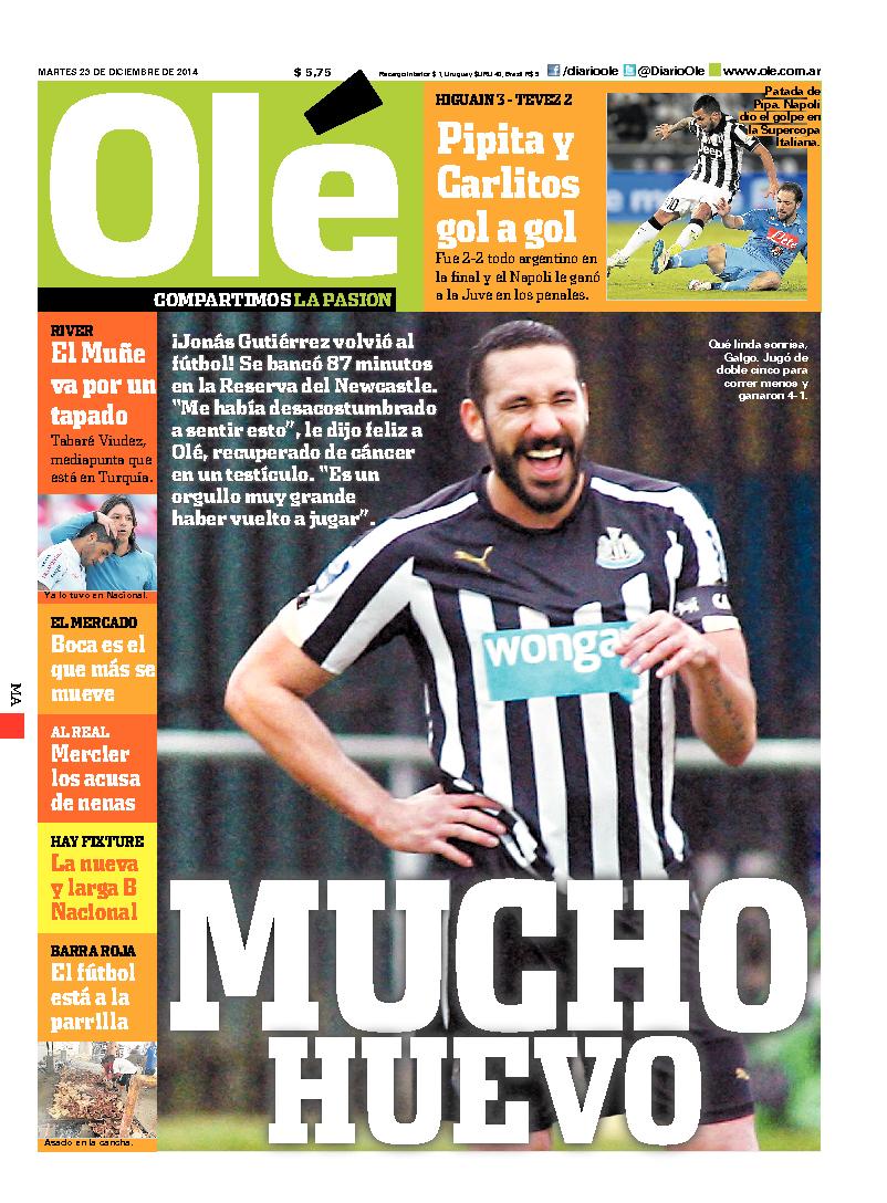 en sintesis, cualquier alusión al glorioso Titi. Así y todo la foto deL comentario de tapa es de el perdedor del cotejo… que suerte que Olé piense en los segundos antes que en los primeros…