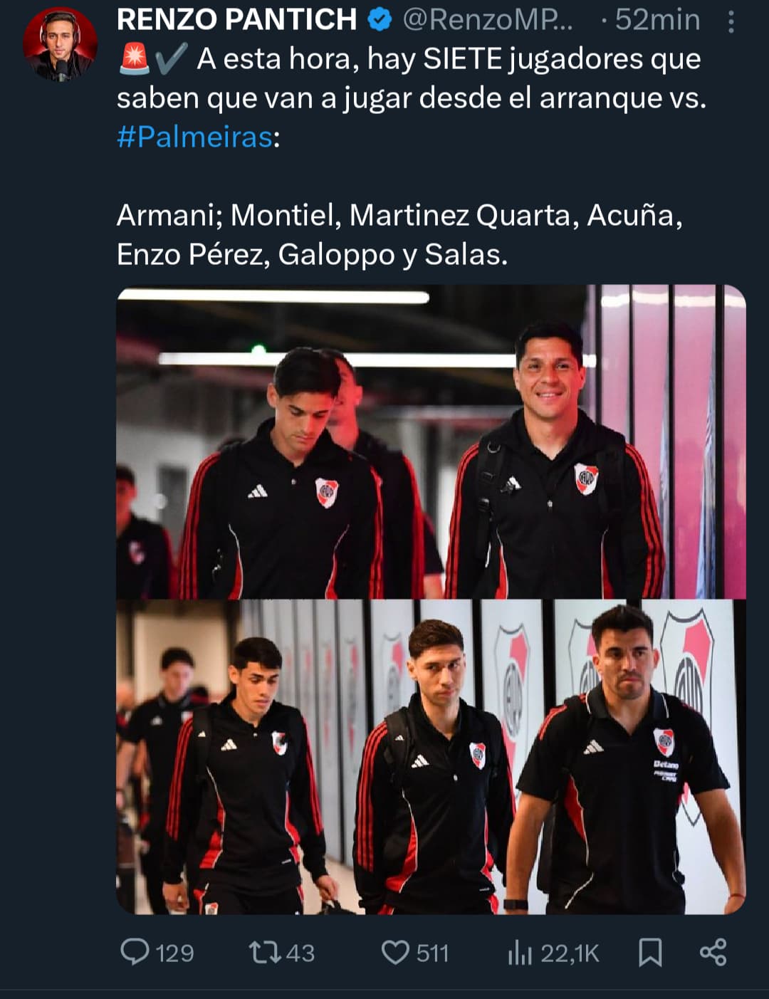 Lo de Enzo es insólito, lo bailaron en la ida , lo sacaron para protegerlo de una humillación más grande y hoy el pelotudo de Gallardo lo pone de titular jajajaja lo hace a propósito, no se entiende