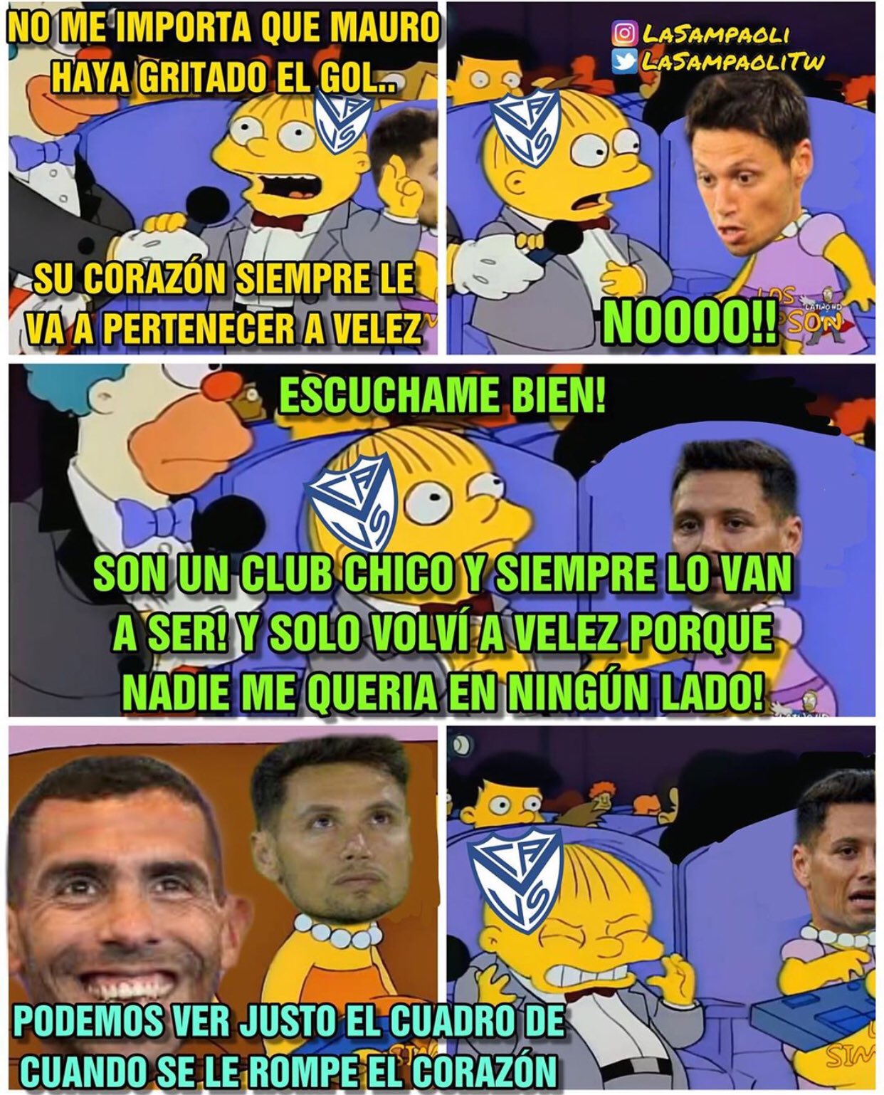 No suelo ver los partidos de esta inmundicia, pero ayer lo miré, de local no patearon al arco, no pasaron la mitad de la cancha, Velez con todos pibes lo hizo figura al arquero, ayudín del arbitro y en las tribunas festejaban como locos cada penal, viendo ayer el partido disfruté mas lo de Madrid, ganarle a toda esa mugre, jugadores, hinchas inmundos.