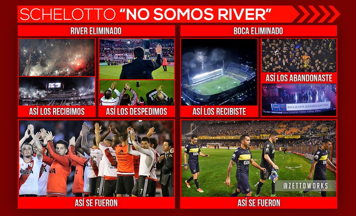 Agreguen el 2016 loco… Perdieron LAS DOS semifinales, yendo ganando… se lo dieron vuelta!!! Nosotros al menos ganamos de local, pegándoles un peludo bárbaro… Trajeron a Tevez para ESTA COPA, a Barros Estechoto y su “mística”… rajaron a Osvaldo, que había llegado como el nuevo Batistuta… LES SALIÓ TODO MAL!!!