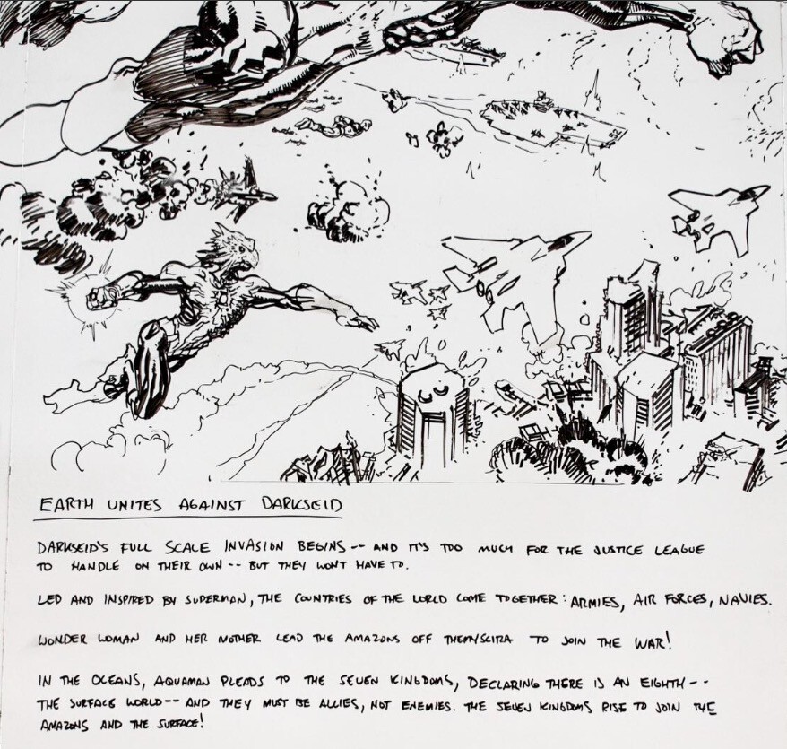 La invasión a gran escala de Darkseid comienza —y es demasiado para que la Justice League la maneje sola—, pero no tendrán que hacerlo. Guiados e inspirados por Superman, los países del mundo se unen: ejércitos, fuerzas aéreas, armadas. Wonder Woman y su madre lideran a las Amazonas fuera de Themyscira, ¡para unirse a la guerra! En los océanos, Aquaman hace un llamado a los siete reinos, declarando que hay un octavo —el mundo de la superficie— y que deben ser aliados, no enemigos. Los siete reinos se levantan para unirse a las Amazonas y a la superficie.
