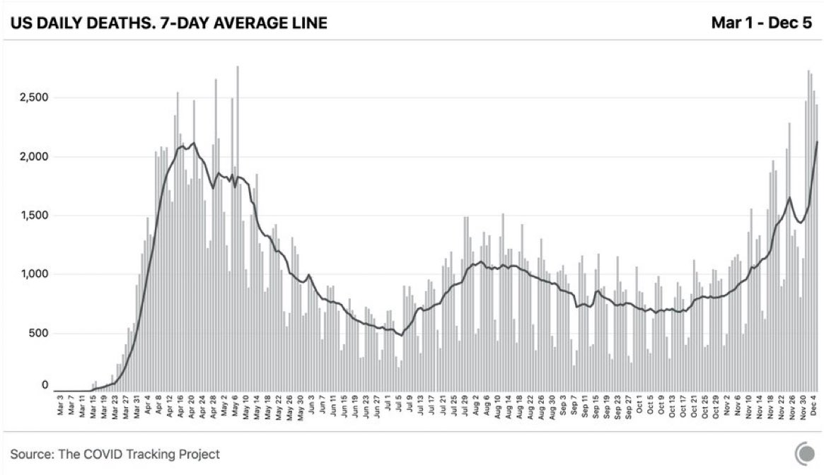 Para mi no tiene que ver con lo de las elecciones lo de EEUU, por ahí las juntadas y quilombo después de las elecciones. Tiene que ver con que la gente ya no le da ni cabida a los cuidados del virus. Ya están entregados y la diferencia con la primer ola es que esta ola no están obligando a ningún estado a cerrarse. Esta vez si están haciendo la de dejar todo abierto, la otra vez algún gobernador se rebelaba y cerraba y había mucha diferencia entre estados.