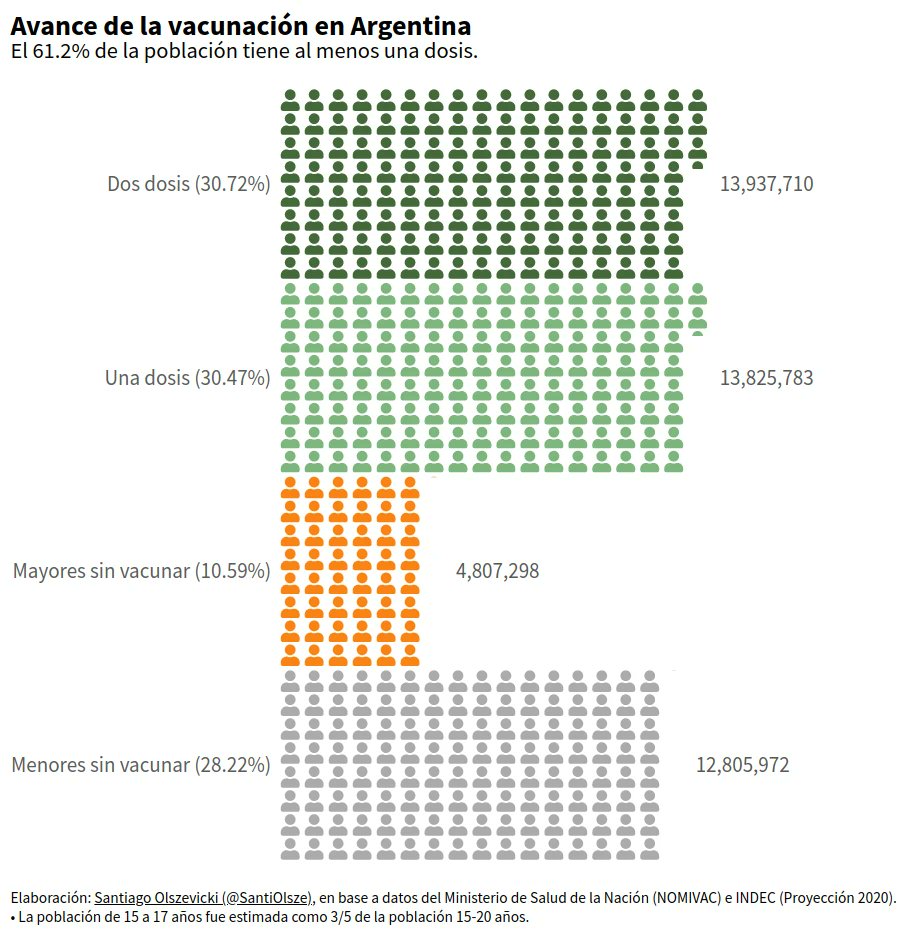 Argentina tiene una población con muchos menores de 18 años. Los mayores de 18 ya se vacunaron más de un 85% con la primer dosis.
