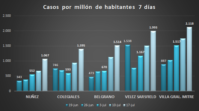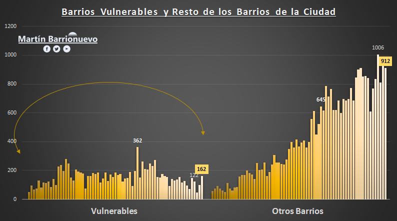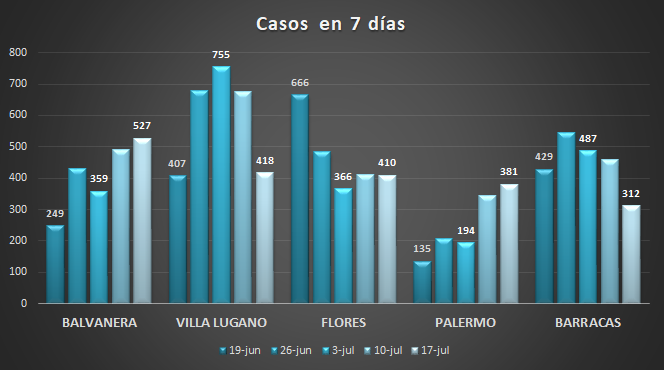 Al parecer estan bajando la cantidad de casos en los puntos criticos de la ciudad pero estan subiendo en los barrios donde estaba estabilizado. Se esta alejando mas del microcentro