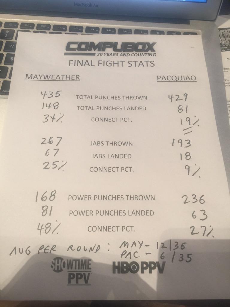 Conectó casi el doble de golpes y pacquiao tuvo el porcentaje de efectividad mas bajo de toda su carrera , no lloren mas