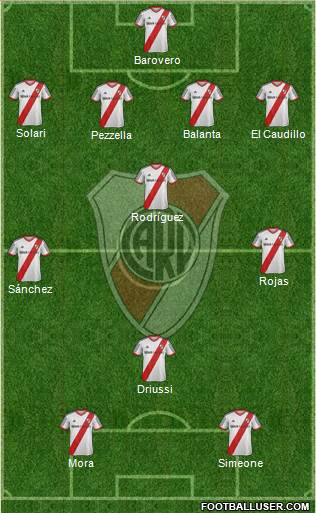 Barovero; Mercado, Pezzella, Balanta, Funes Mori; Sánchez, Guido, Rojas; Mora, Boye y Simeone.