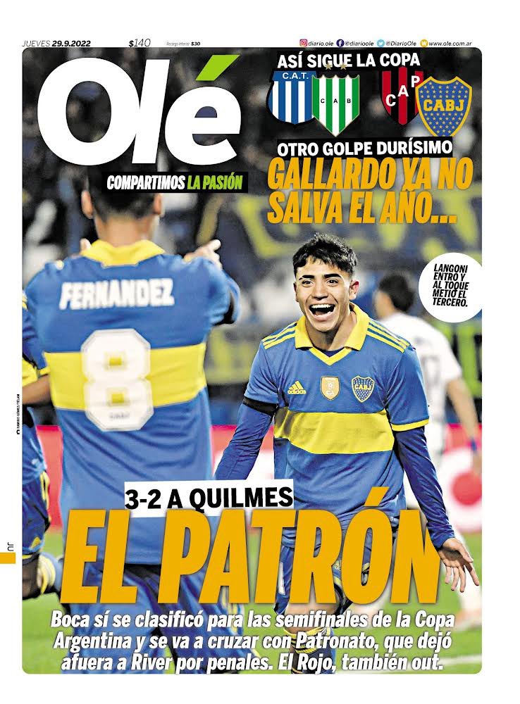 Tal vez es muy rebuscado pero conocemos a Olé muy bien, no sería casualidad que la frase “Gallardo no salva el año” tenga cubierta la Ñ con la linea de arriba, para que parezca que diga ANO. Estos hijos de puta meten esos chistes sutiles a propósito, lo vimos mil veces…